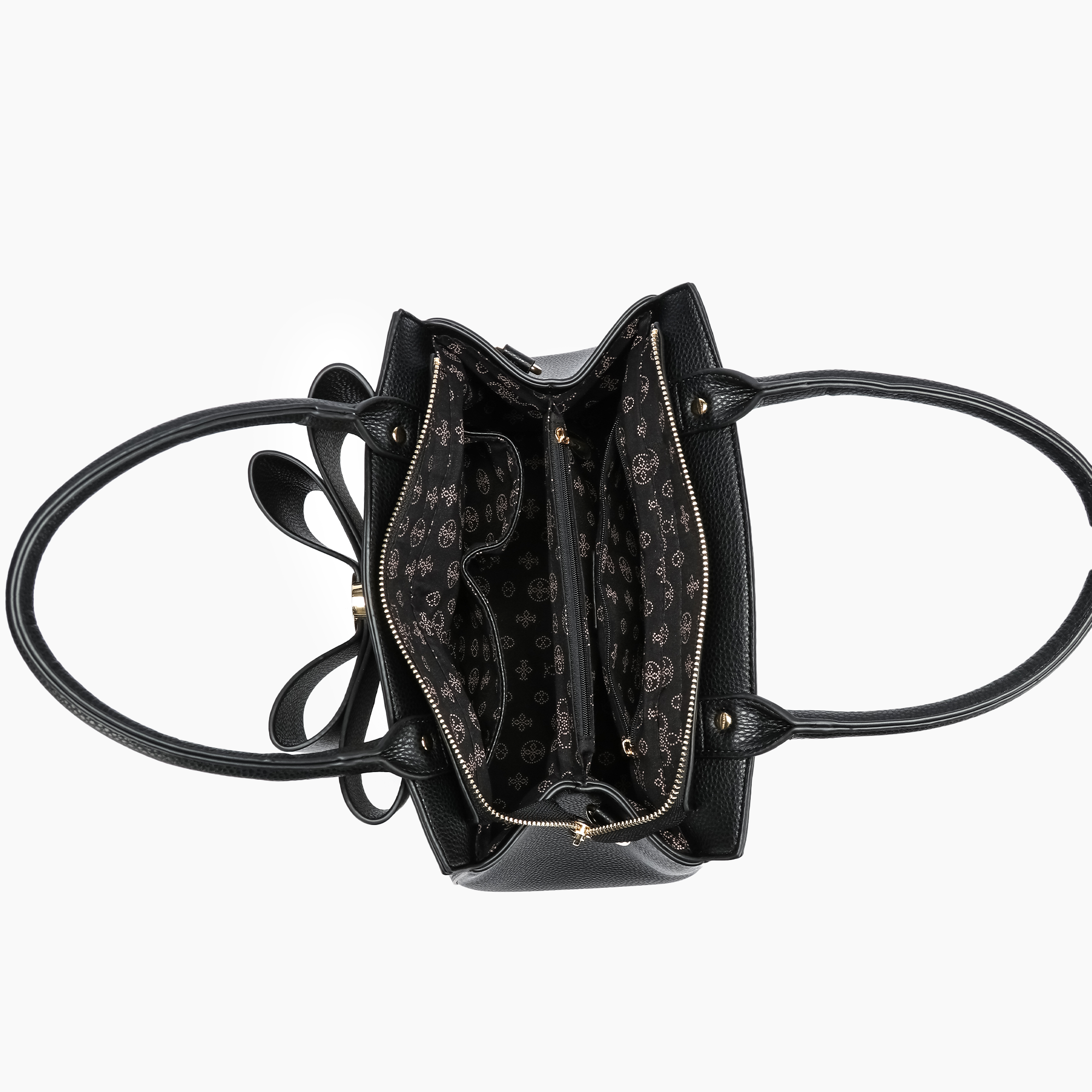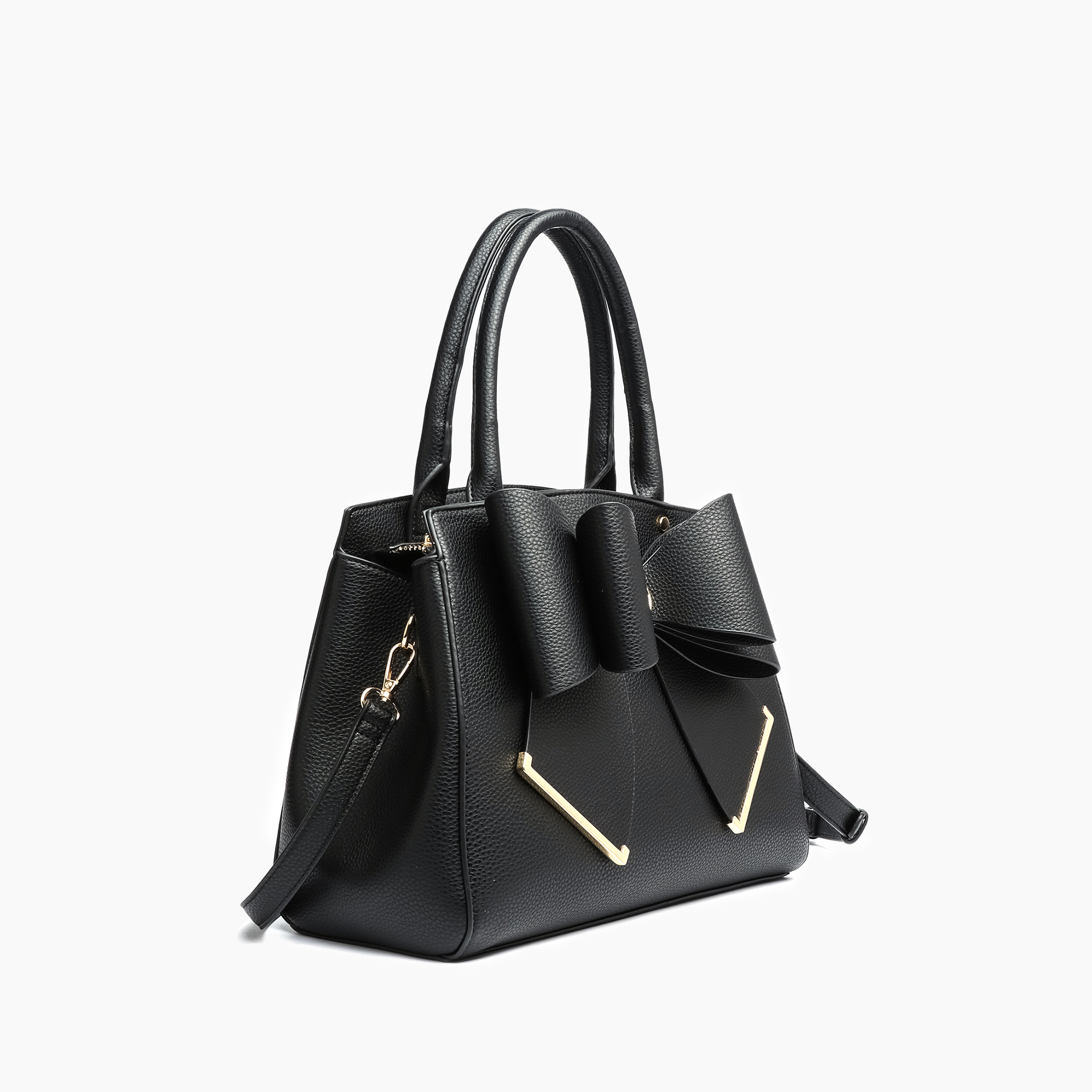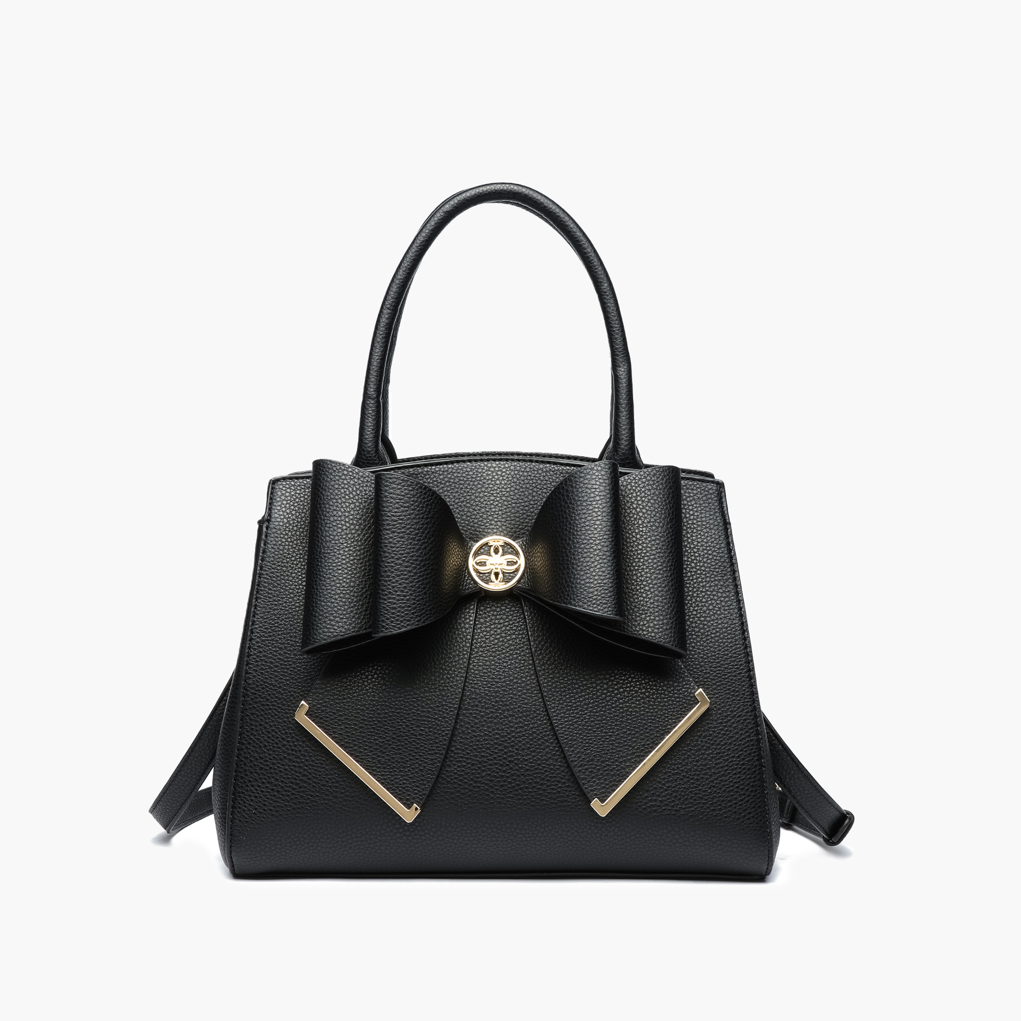 Chic, timeless, and versatile—our Jen & Co. Poppy Bow Tie Satchel is the statement bag you’ll reach for every season. Crafted in a sleek black vegan leather with a structured silhouette, this satchel is detailed with a bold oversized bow and gold-tone accents for a luxe finish. Dual top handles and a spacious interior make it the perfect everyday handbag, whether you’re headed to work, brunch, or a night out.