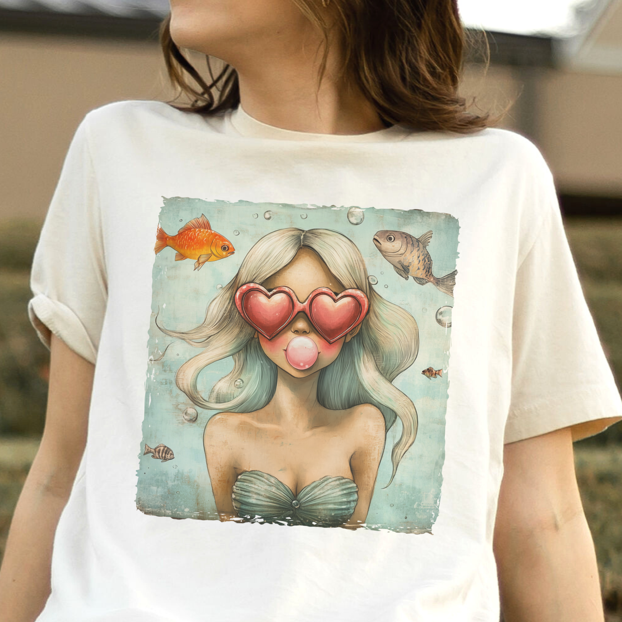 Make a splash with our Coastal Bubblegum Mermaid Graphic T-Shirt! This playful tee combines coastal charm with whimsical fantasy, featuring a dreamy mermaid blowing a bubblegum bubble. With a soft, vibrant sublimation print, machine washable design, and cozy 50/50 blend, this tee is perfect for everyday adventures. Unisex sizing allows for a relaxed and comfy fit for all. A must-have for mermaid lovers looking to add a touch of magic to their wardrobe.