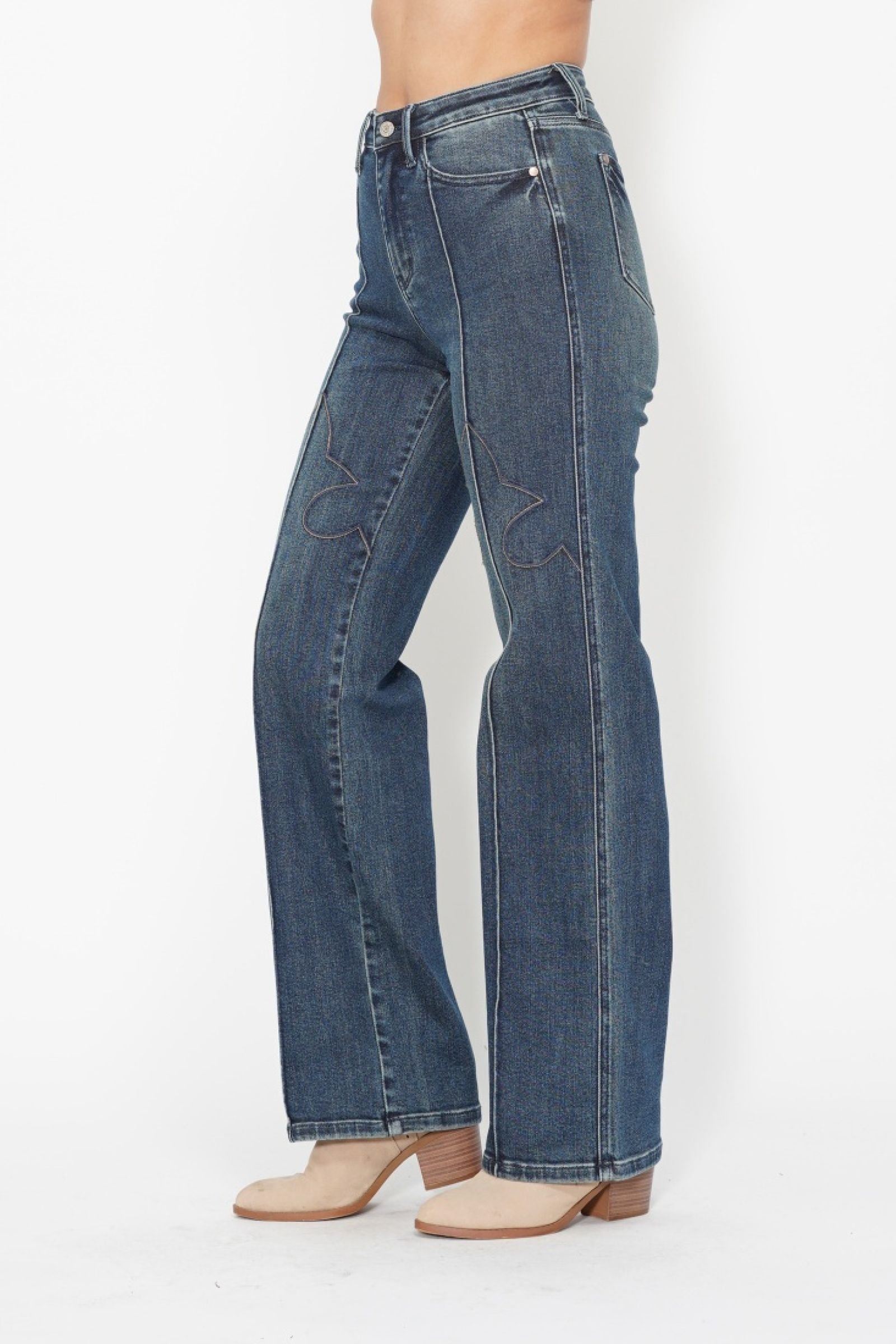 Expertly crafted with a high waist and western seam detailing, these straight leg jeans will enhance your figure and add a touch of timeless style to your wardrobe. Made from quality materials, they are comfortable and flattering, perfect for any occasion.