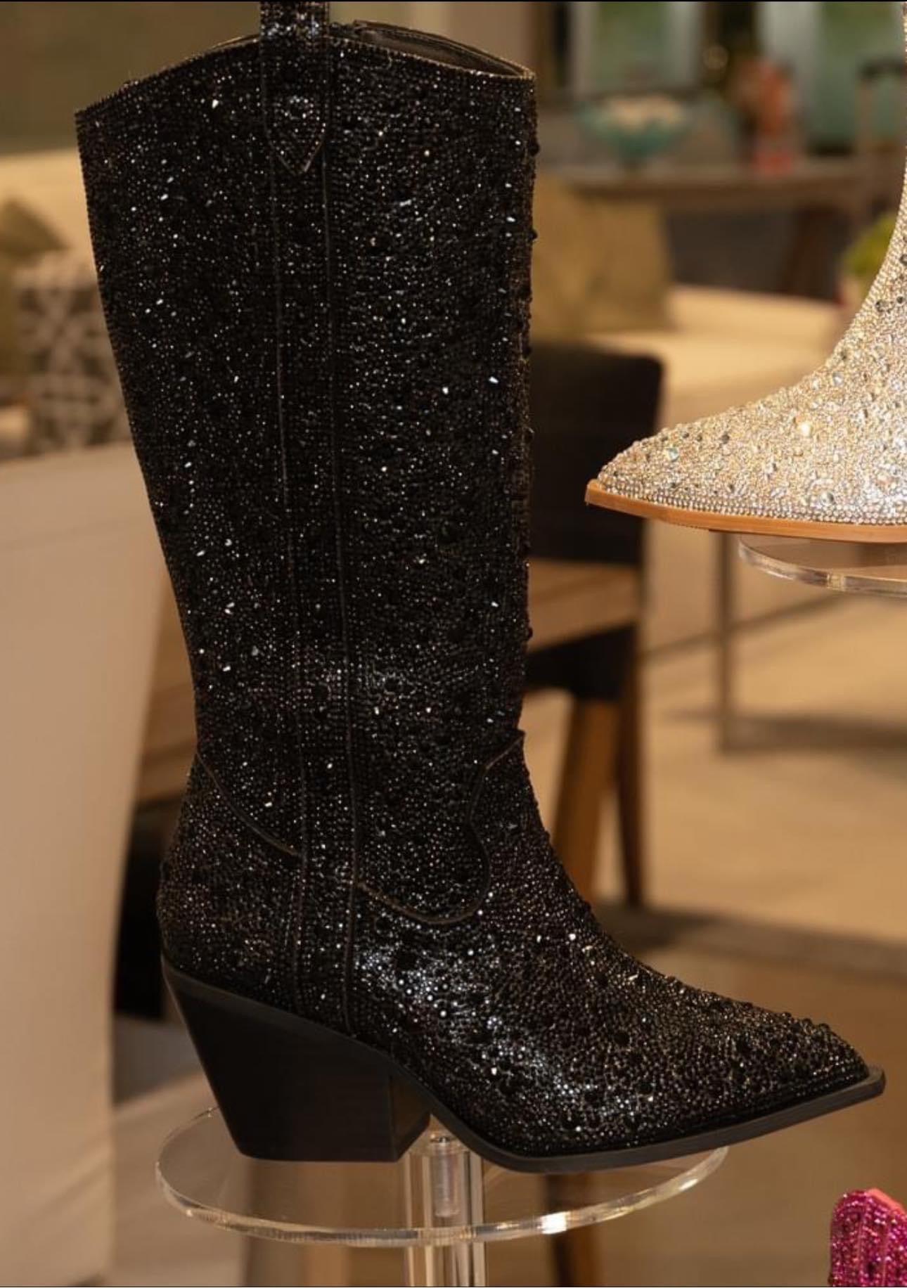 Grab your girlfriends and sparkle up the dance hall with these GORGEOUS western boots, by Corky's! They feature an all over rhinestone design with an 11.75" shaft, a 3.25" heel, pointed toe, side zip closure, and Corky's famous, and oh so comfy, marshmallow insole. These boots will dazzle up any outfit, from mini skirts and graphic t's to denim and blouses!