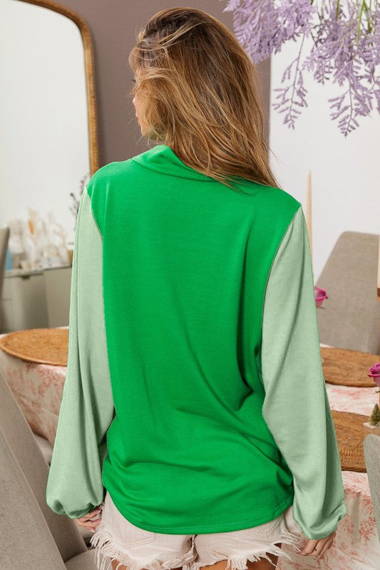 Clover cutout puff sleeve top by Bibi. Balloon sleeves. Loose turtle neck
