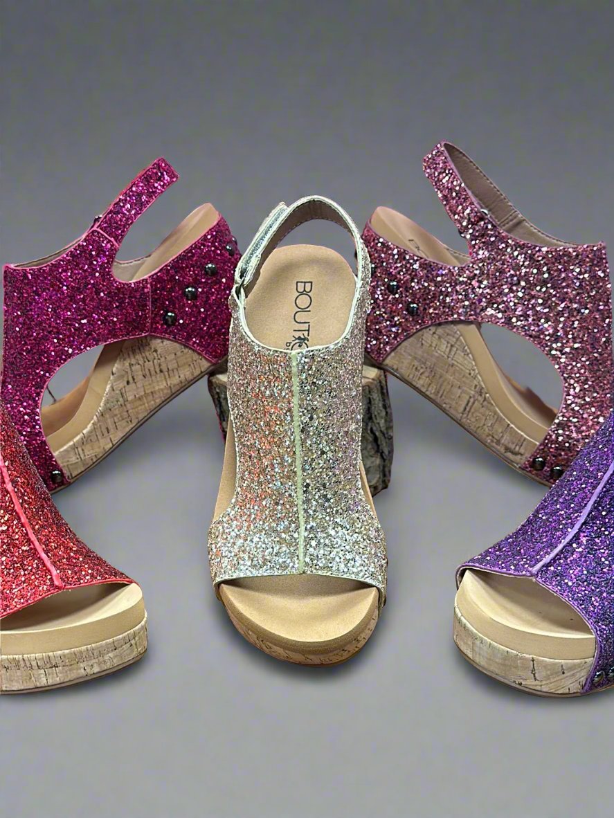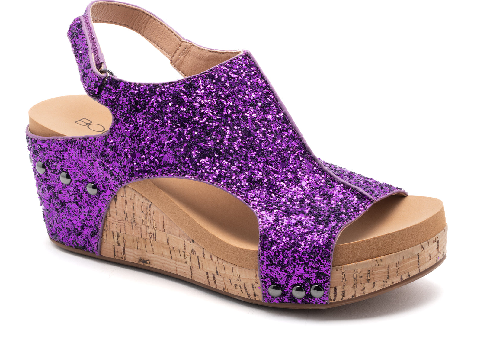 The Corky's Carley wedge is 100% THE SHOE that will start your obsession with Corkys Footwear! It is the most comfortable wedge you will ever wear! You'll walk with a spring in your step with Corky's Carley Wedge Sandals! Crafted with a sleek, elegant design and their iconic marshmallow-soft insole, your feet will be cradled in comfort. The peep toe and full coverage top make them perfect for any season, and the thoughtful design means they will fit wider feet like a glove. Featuring a 3" cork wedge and a hook-and-loop velcro strap, strut the streets in style and comfort! Corky's does not make half sizes, so if you are in between sizes, we recommend sizing up to the next whole size in order to ensure a proper fit.