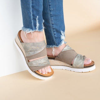 Corkys Zipadee Gold Metallic Wedge With Adjustable Straps