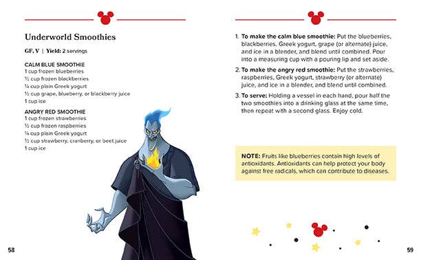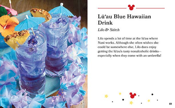 EASY AND DELICIOUS: Raise a glass to this recipe book filled with simple instructions featuring everyday ingredients to brew up delicious drinks for all ages. Enjoy Lu'Au Blue Hawaiian (Lilo & Stitch), Black Forest Hot Cocoa (Snow White and the Seven Dwarfs), Growth Potion (Alice in Wonderland), Tiana Mardi Gras Smoothie (Princess and the Frog), and so many more drinks to sip and savor