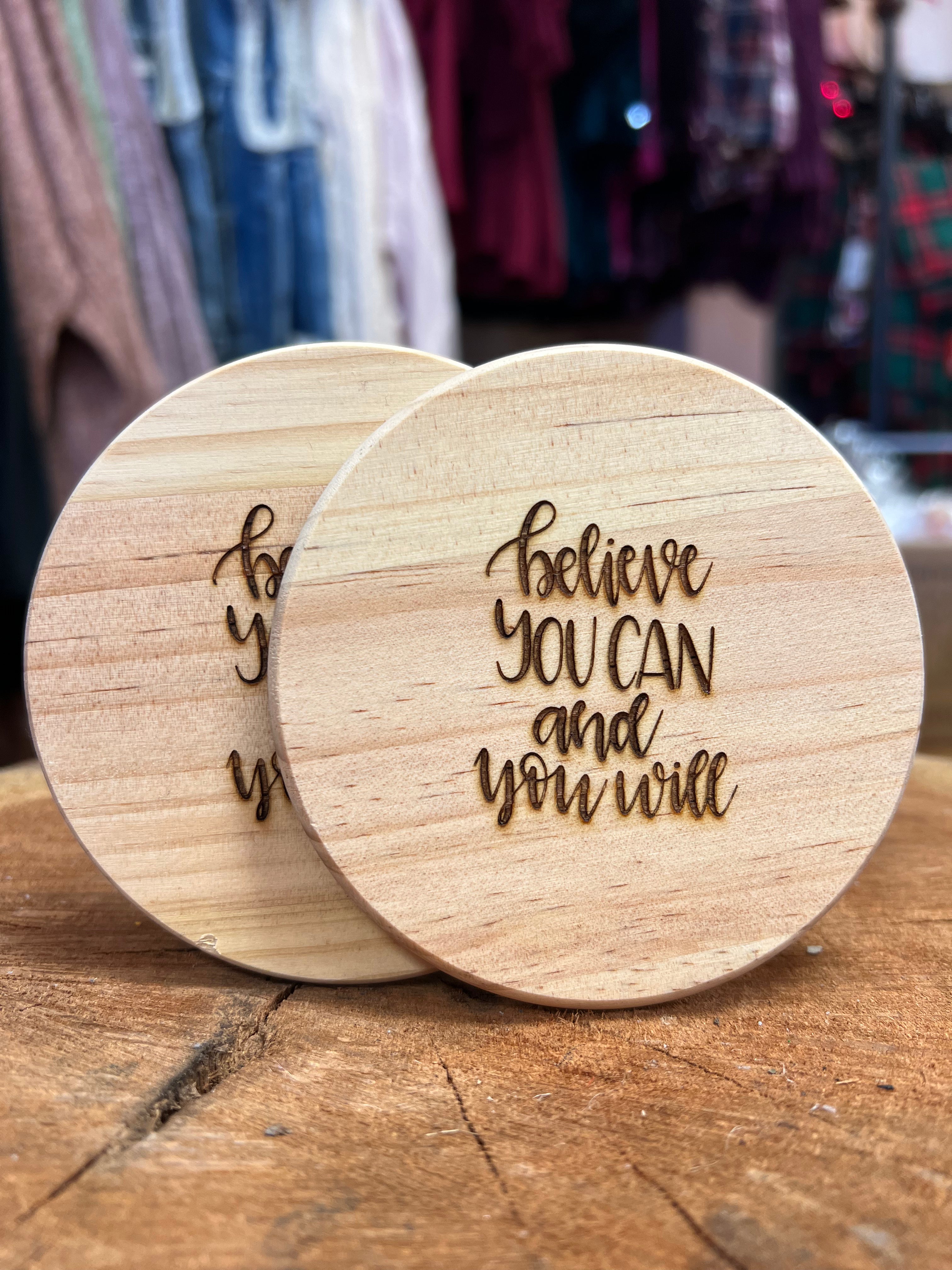 “Believe You Can” Wooden Coasters - 2 Pack