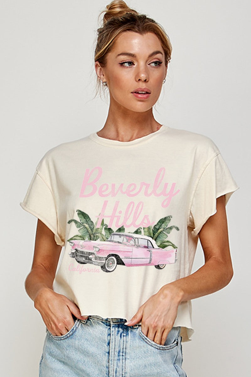 Show off your unique style with our Beverly Hill Vintage Graphic Crop Top! Designed and printed in the USA, this 100% ring spun cotton top is heavyweight and garment dyed for a perfect fit. Each top is handmade with a double layer neck for added character. Channel your inner boho with this vintage-inspired look!