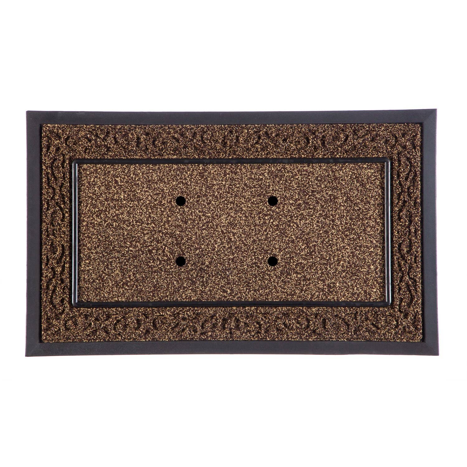 Greet guests in style and showcase your favorite Sassafras switch insert design (sold separately) with this brown scroll mat tray. An embossed scroll solid border and inner base with drainage holes make this the ultimate design. The piece features a 22"W x 10"H opening space to place the insert. Sassafras mats are easy to switch in and out and are the perfect, inexpensive way to dress up any entryway. Suitable for indoor and outdoor use, the mat tray is mildew resistant and has an anti-slip rubber backing to keep the piece in place on your porch, patio, or floor. Spot clean with soap and warm water or hose down.