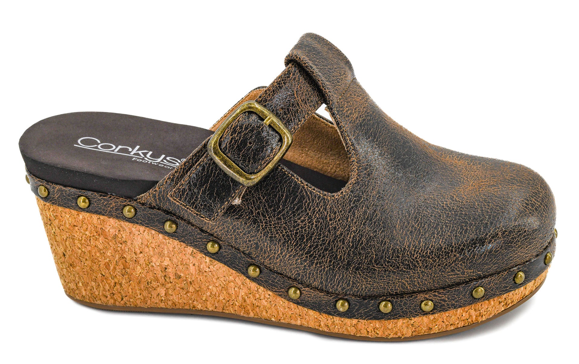 - Lightweight cork wedge heel
