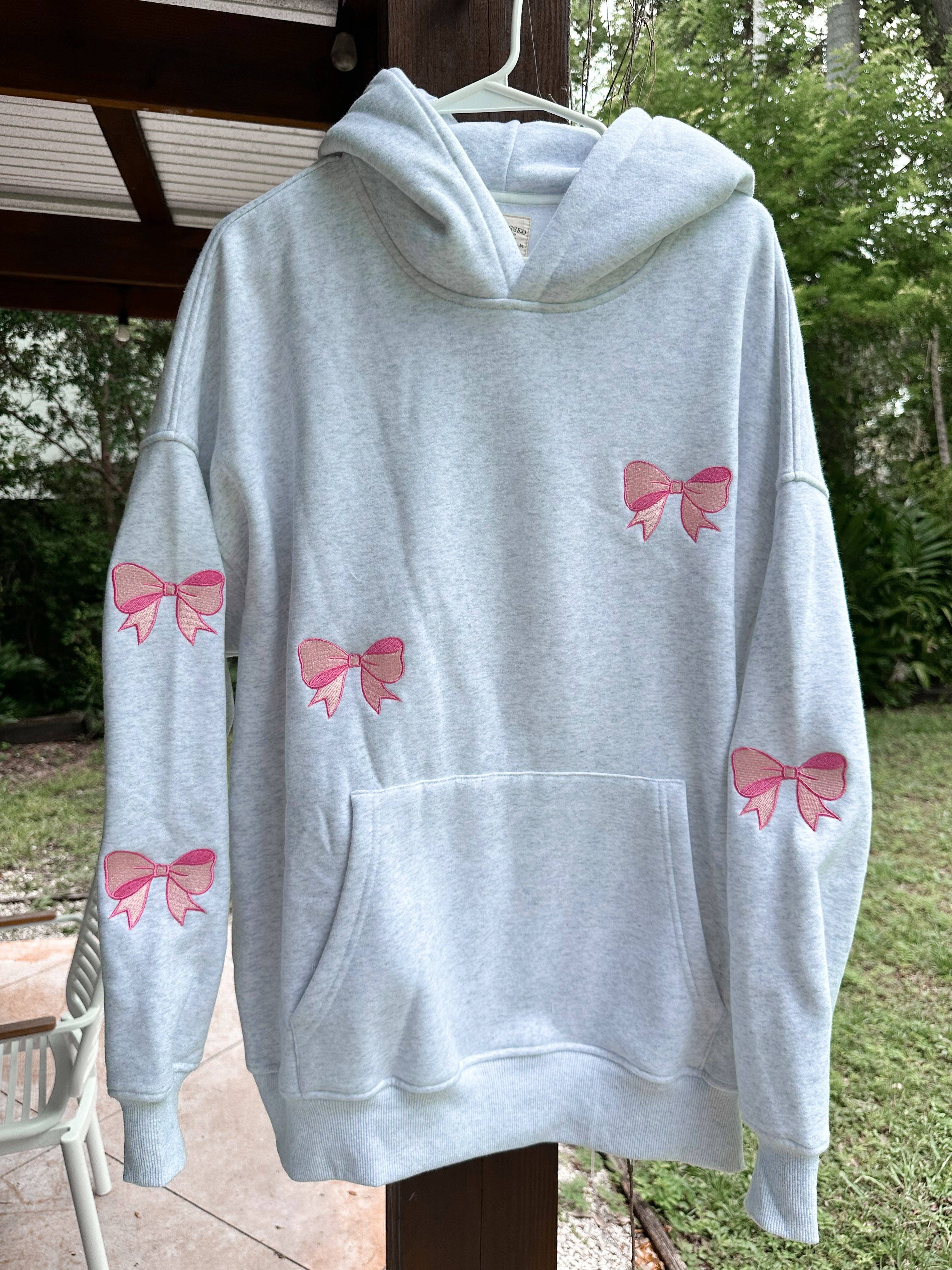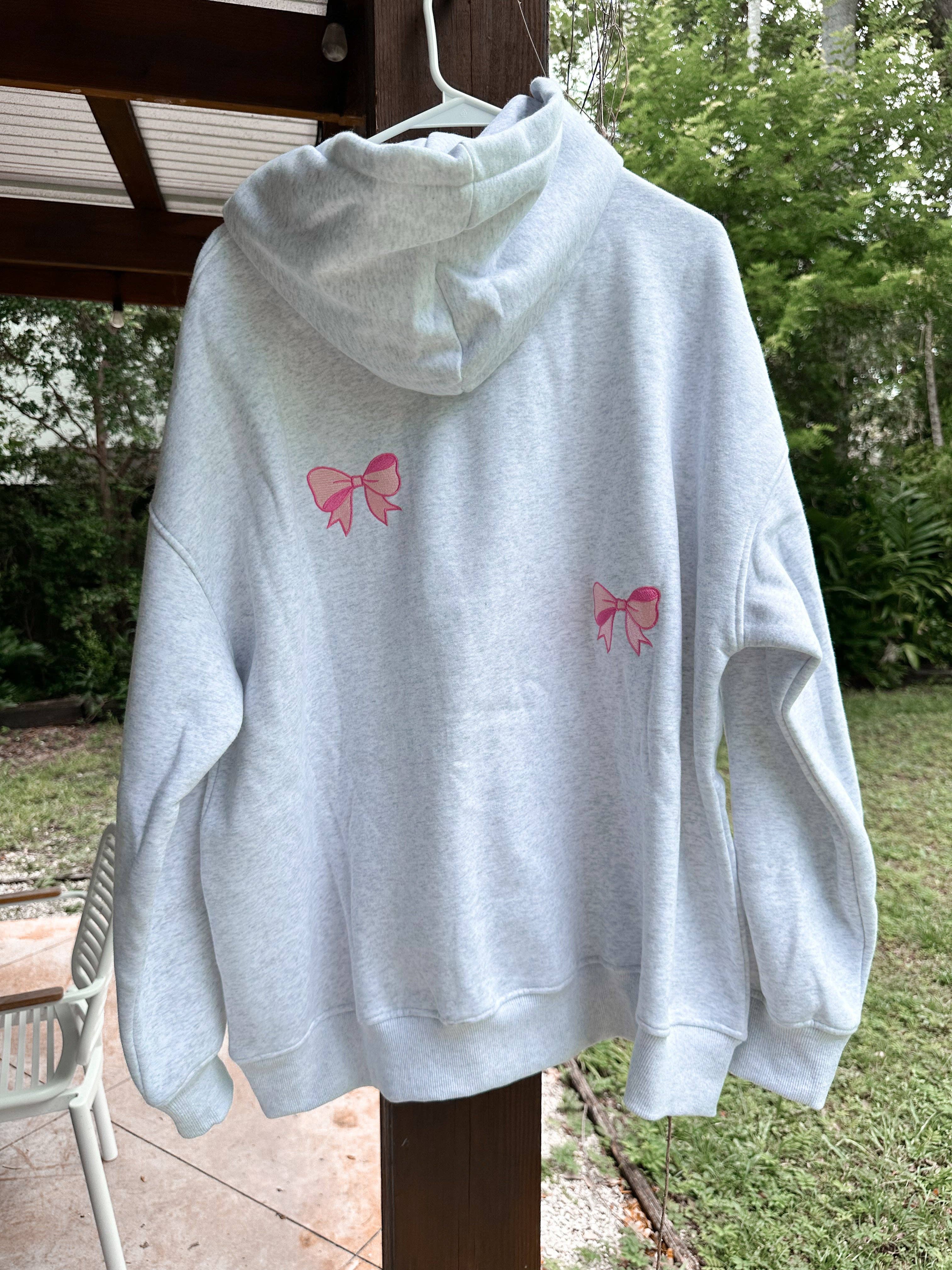 Stay cool and stylish in the Embroider Bow Hoodie from Sunkissedcoconut. Unisex adult sizes ensure a perfect fit, and our designs are made with luxury materials for lasting quality. Don't be afraid to size up for a looser fit or to accommodate a larger chest. Comes in a fun, oversized fit for a youthful edge.