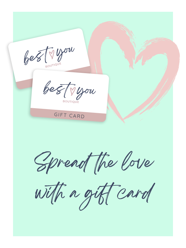 Treat someone you love with a Best You Boutique Gift Certificate. Perfect for that person who already has everything or that special someone that is difficult to buy for.