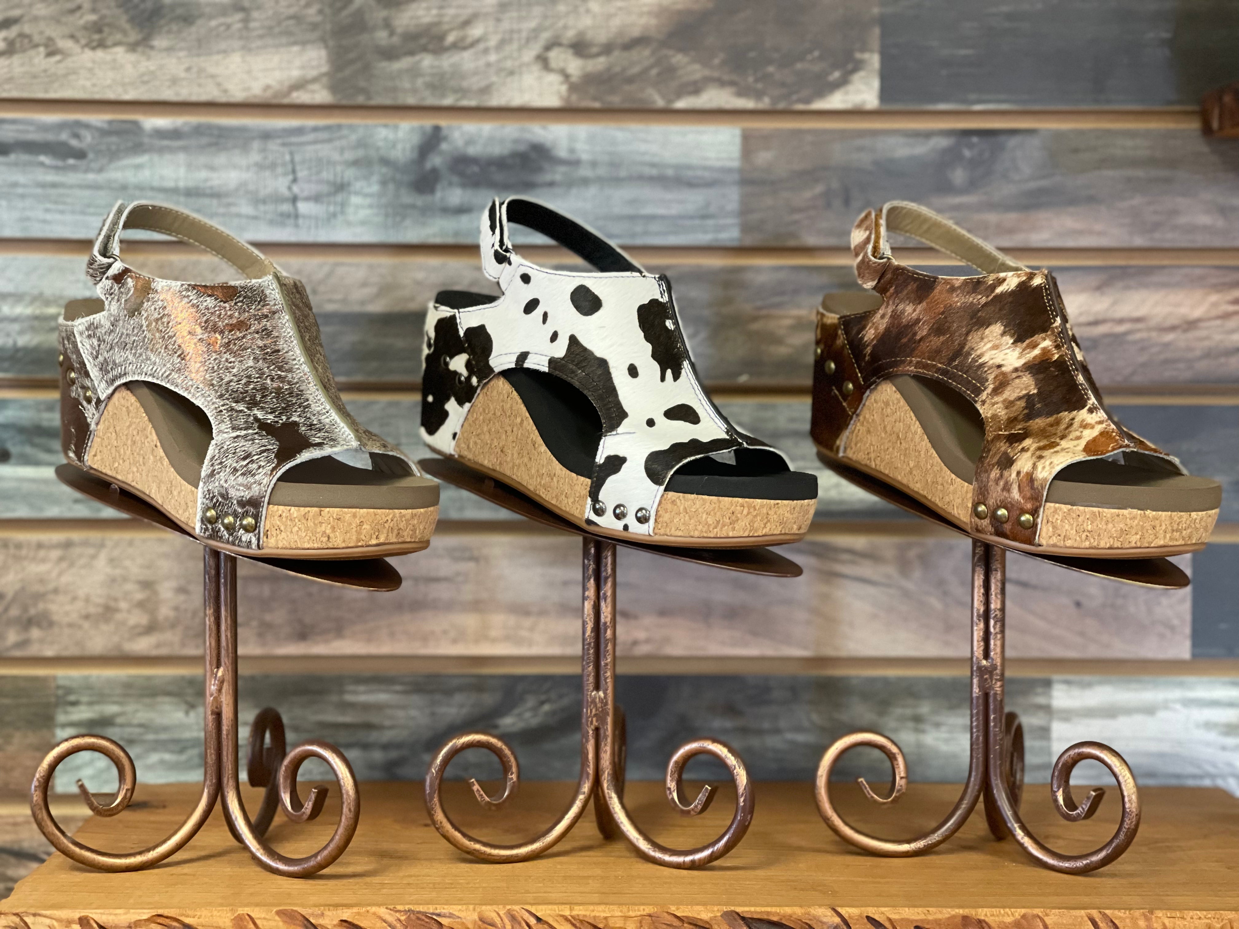 These Boutique by Corky’s Cow Suede wedges are absolutely gorgeous! Featuring a beautiful cow print and a superior quality construction, these beautiful wedge sandals will make a statement wherever you go. Complete with an extremely comfortable feel, these wedges are definitely made for walkin'