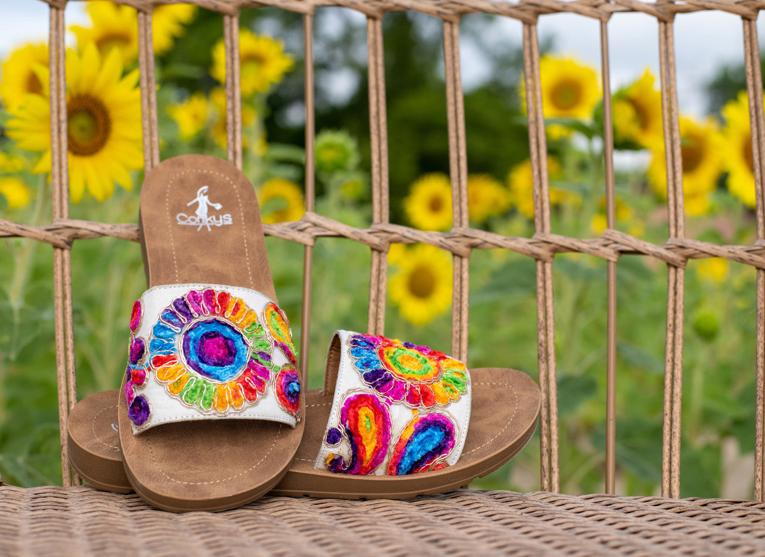 THIS BRIGHTLY COLORED SANDAL IS PERFECT FOR THE WARMER WEATHER! Sizes: 6-11 Slip-On Style 1/2" Heel TPR Outsole, Eva Insole True to Size; If Between Sizes We Recommending Sizing Up