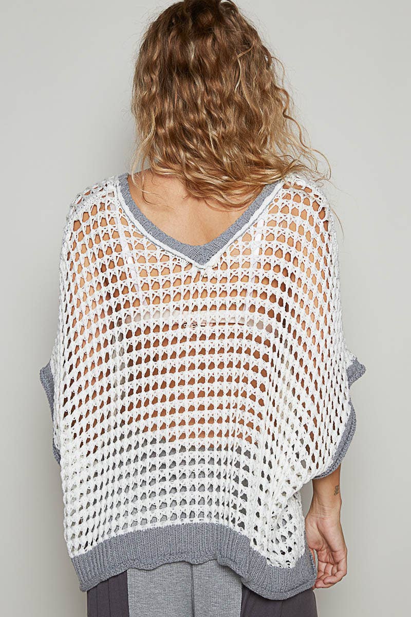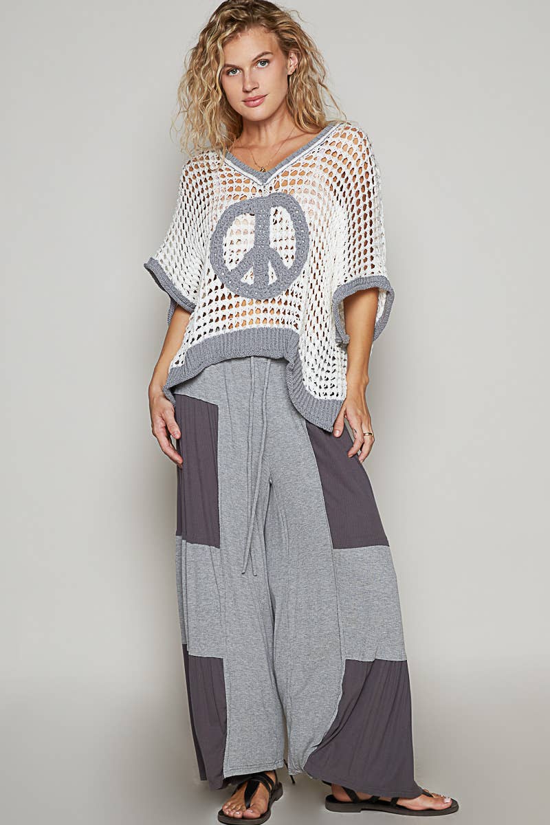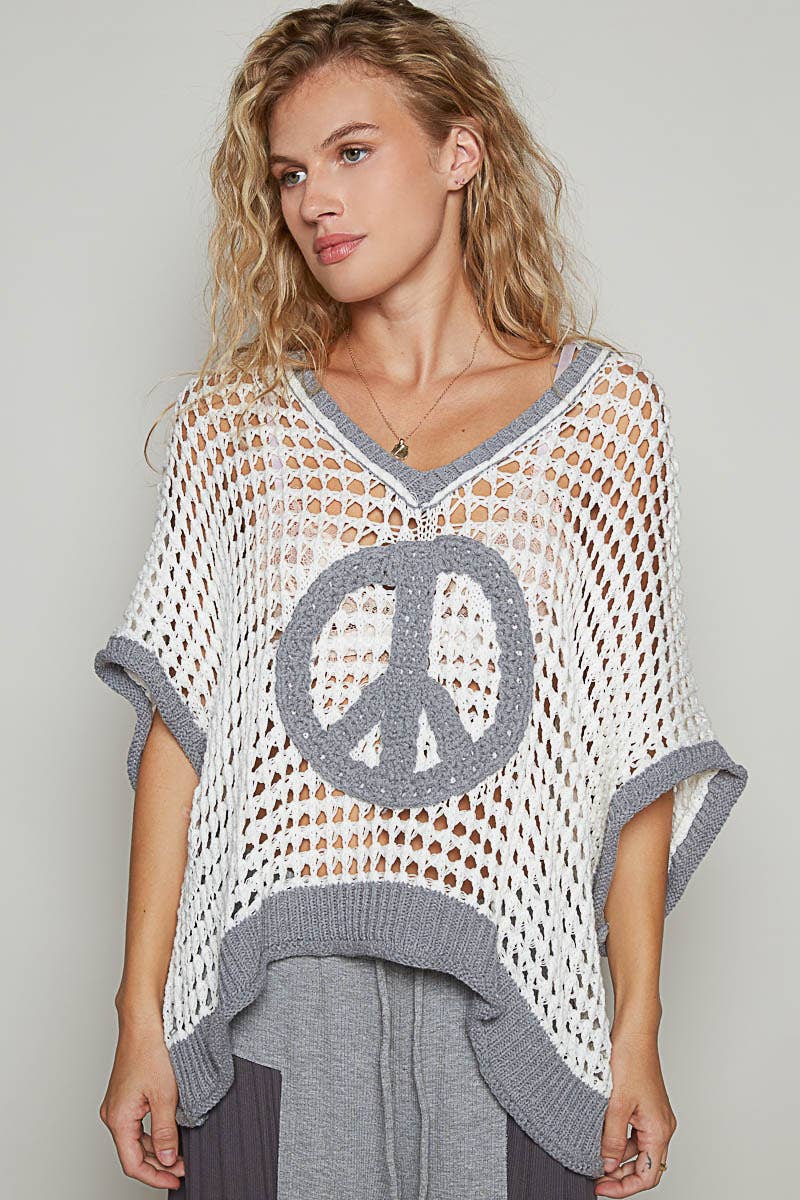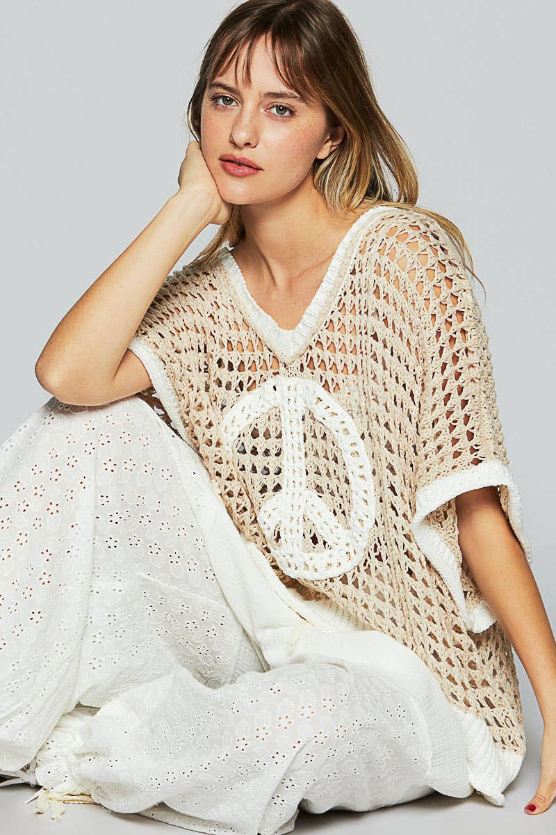 Pol Clothing Oversize V-Neck Short Sleeve Peace Sign Sweater