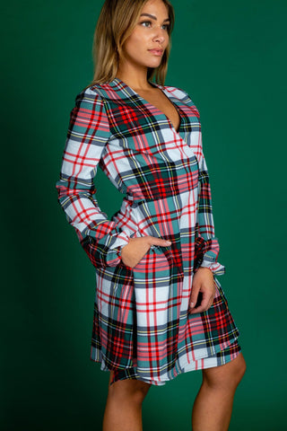 Whether or not you're into scotch, you'll look like a smooth drink of fine holiday spirits when you wrap up in this green and red plaid Christmas dress. Get your sweetie all dolled up in a matching suit, and remember that unwrapping is half the fun.